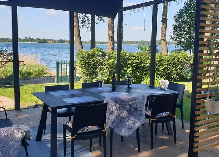 Апартаменты Stacja Mazury - пляжный вариант жилья в Нартах, расположенный в 30 км от аэропорта Ольштын-Мазуры. Одной из изюминок этих апартаментов является терраса, с которой открывается вид на озеро.